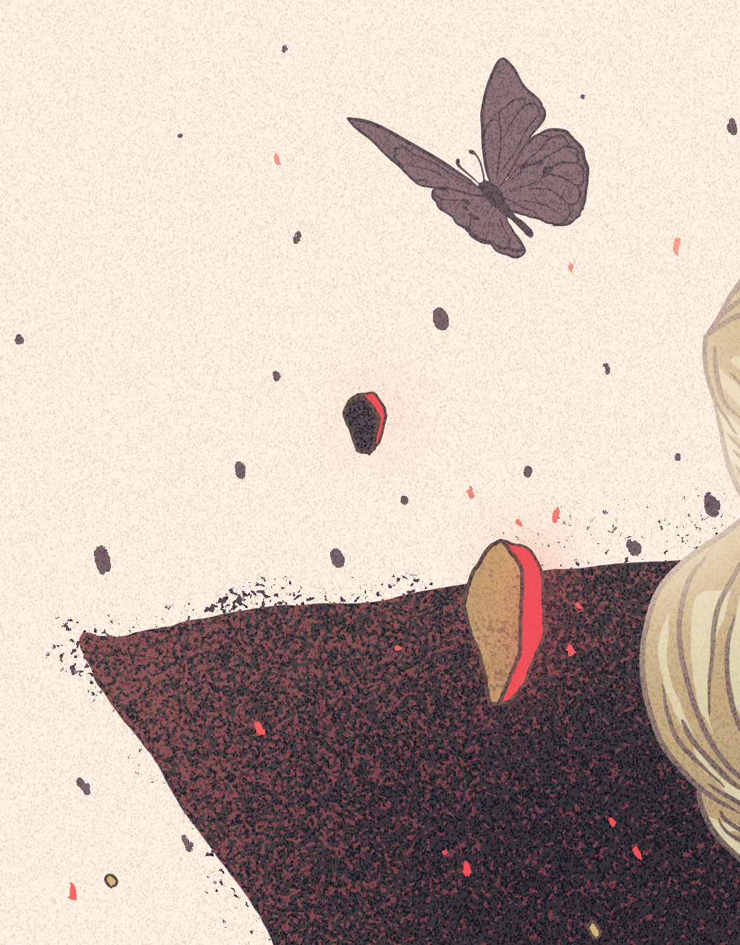 Des papillons comme messagers d’un renouveau, des éclats comme des étoiles noires,